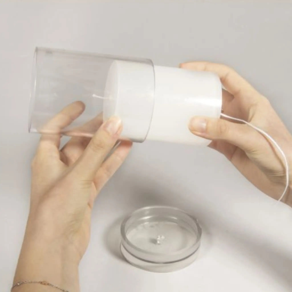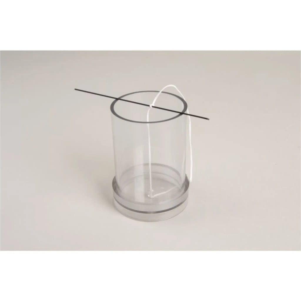 Du brauchst Kerzenwachs (z. B. Wachslinsen), einen Docht und optional Farbpigmente. Erwärme das Wachs im Wasserbad und färbe es nach Wunsch ein. Schneide den Docht auf Länge, knote oben einen Doppelknoten ins Loch der Form und befestige das untere Ende an einem Holzspieß. Lege den Spieß über die Öffnung und gieße vorsichtig das warme Wachs ein. Stelle die Form vor dem Entformen etwa 30 Minuten in den Kühlschrank.