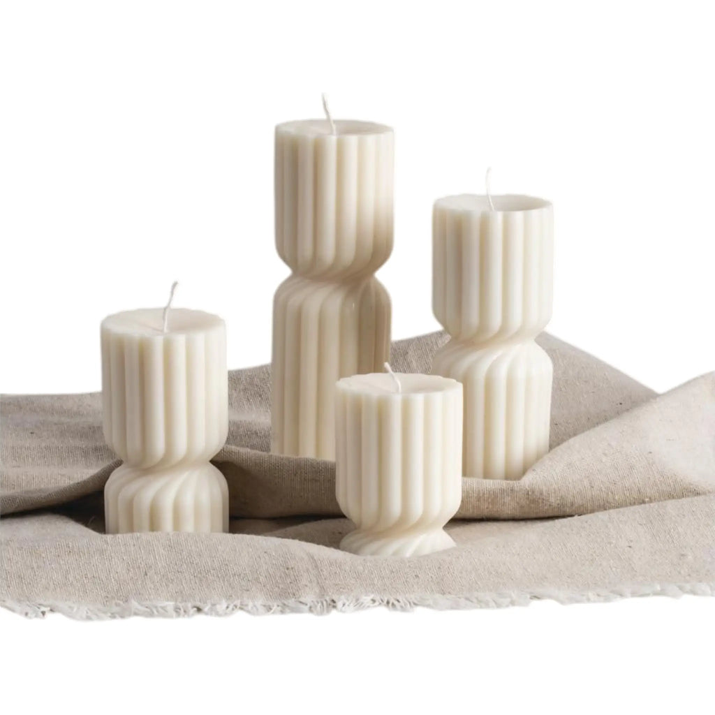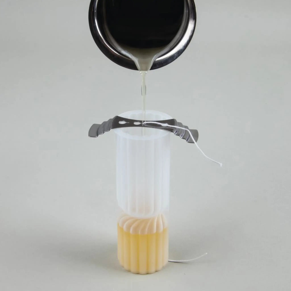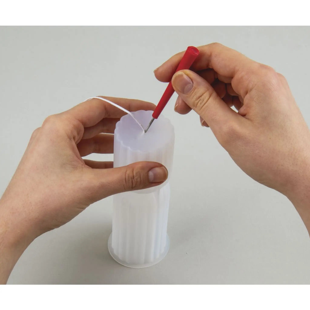 - 1x Kerzengießform für zylindrische gedrehte Rillenkerzen, Höhe 15 cm, 4,6 cm ø, Dochthalter aus Metall und eine genaue Anleitung